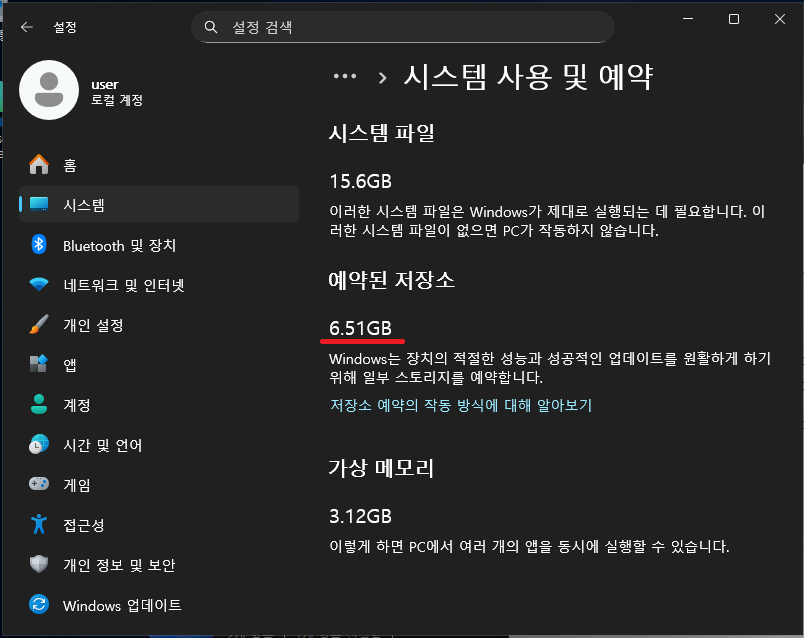 윈도우11 설치하고 시스템 사용 및 예약 확인.